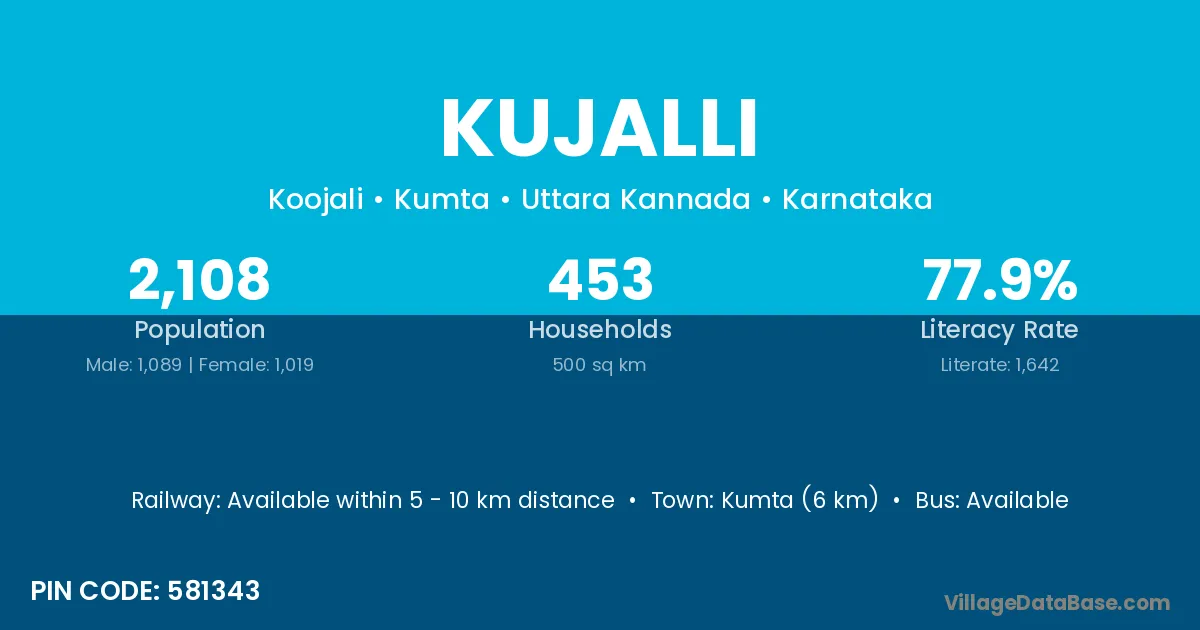 Kumta (6 km) is the nearest town to Kujalli village for major economic activities and is located approximately 6 km away.