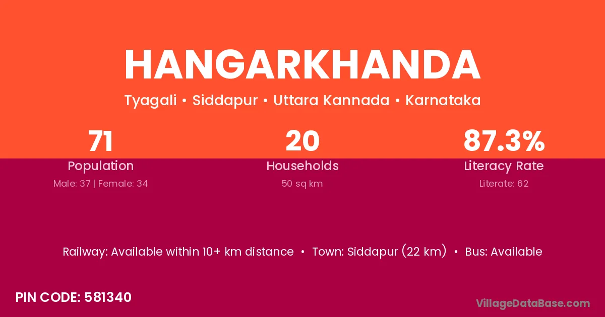 Siddapur (22 km) is the nearest town to Hangarkhanda village for major economic activities and is located approximately 22 km away.