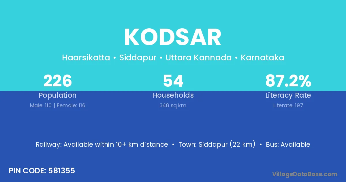 Siddapur (22 km) is the nearest town to Kodsar village for major economic activities and is located approximately 22 km away.