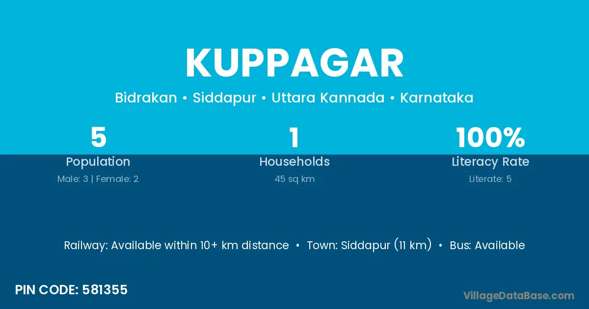 Siddapur (11 km) is the nearest town to Kuppagar village for major economic activities and is located approximately 11 km away.
