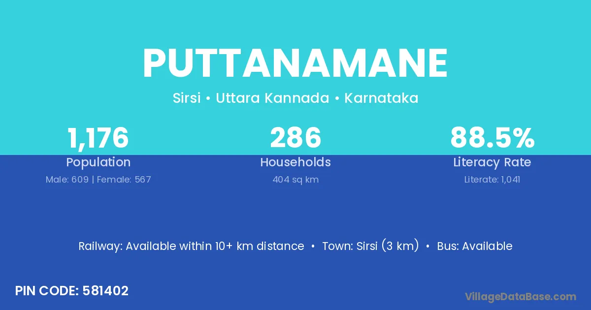 Sirsi (3 km) is the nearest town to Puttanamane village for major economic activities and is located approximately 3 km away.