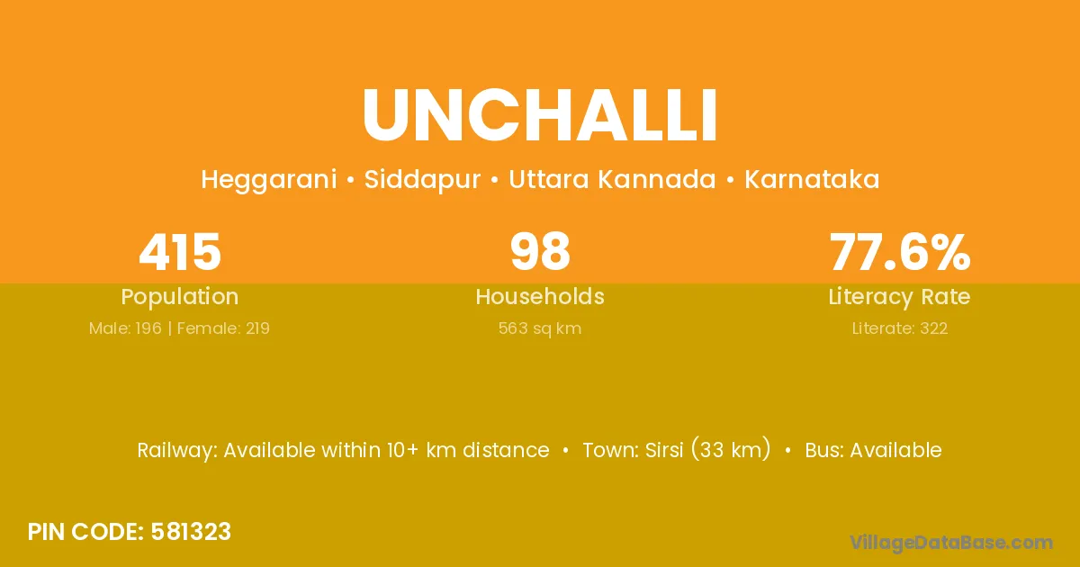 Sirsi (9 km) is the nearest town to Unchalli village for major economic activities and is located approximately 9 km away.