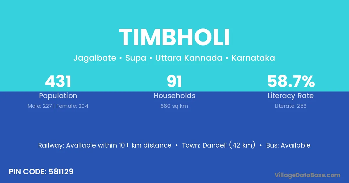 Dandeli (42 km) is the nearest town to Timbholi village for major economic activities and is located approximately 42 km away.