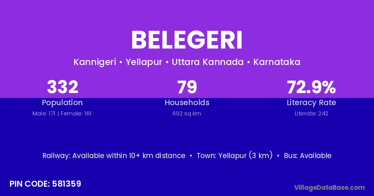 Yellapur (3 km) is the nearest town to Belegeri village for major economic activities and is located approximately 3 km away.