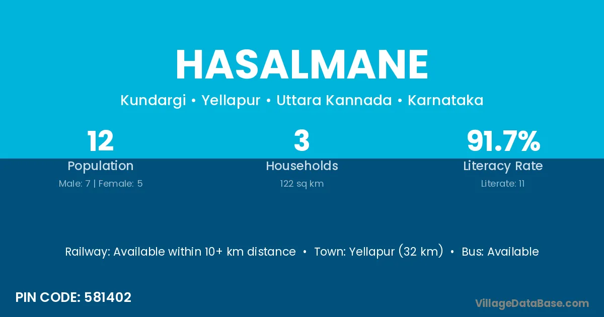 Hasalmane village has a total population of 12 people, of which 7 are males and 5 are females.