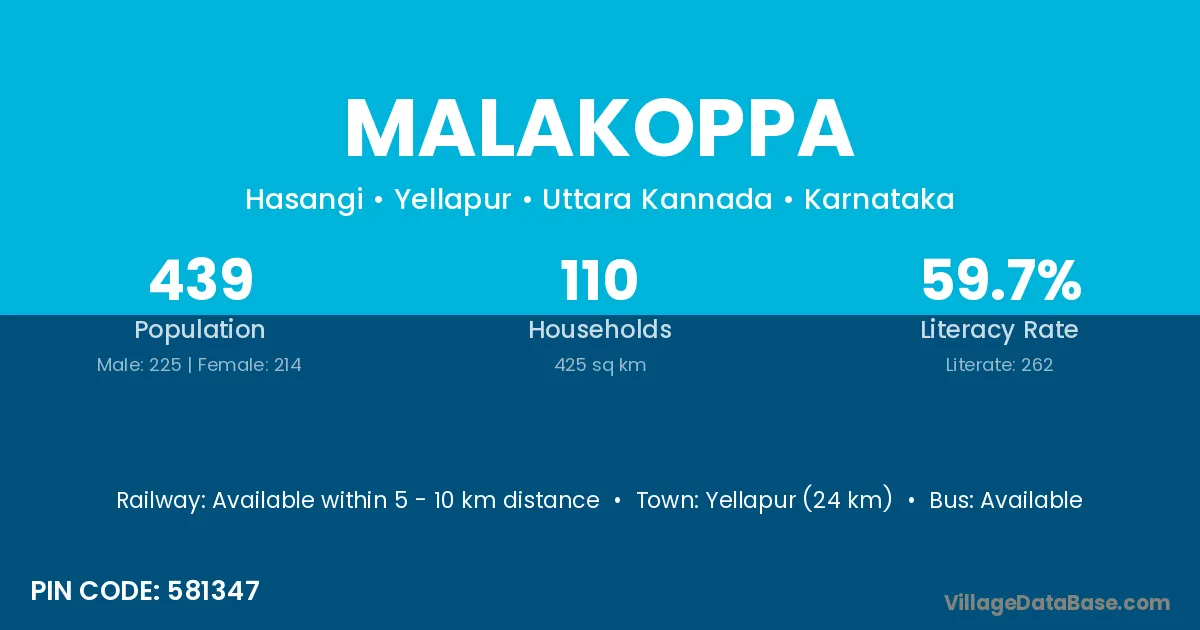 Yellapur (24 km) is the nearest town to Malakoppa village for major economic activities and is located approximately 24 km away.