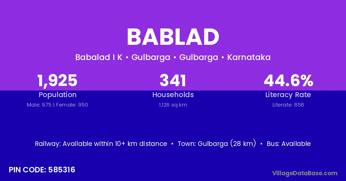 Yadgir (3 km) is the nearest town to Bablad village for major economic activities and is located approximately 3 km away.
