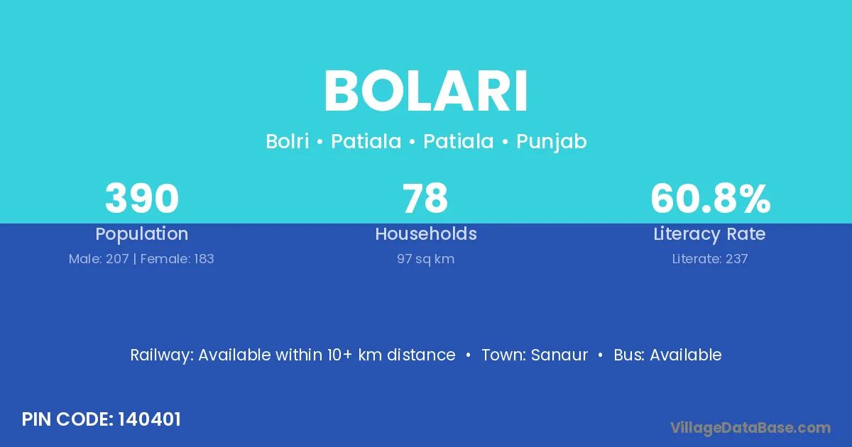 Shahpur (12 km) is the nearest town to Bolari village for major economic activities and is located approximately 12 km away.