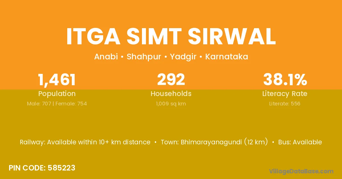 According to Census 2011 information, the village code of Itga Simt Sirwal village is 585223.