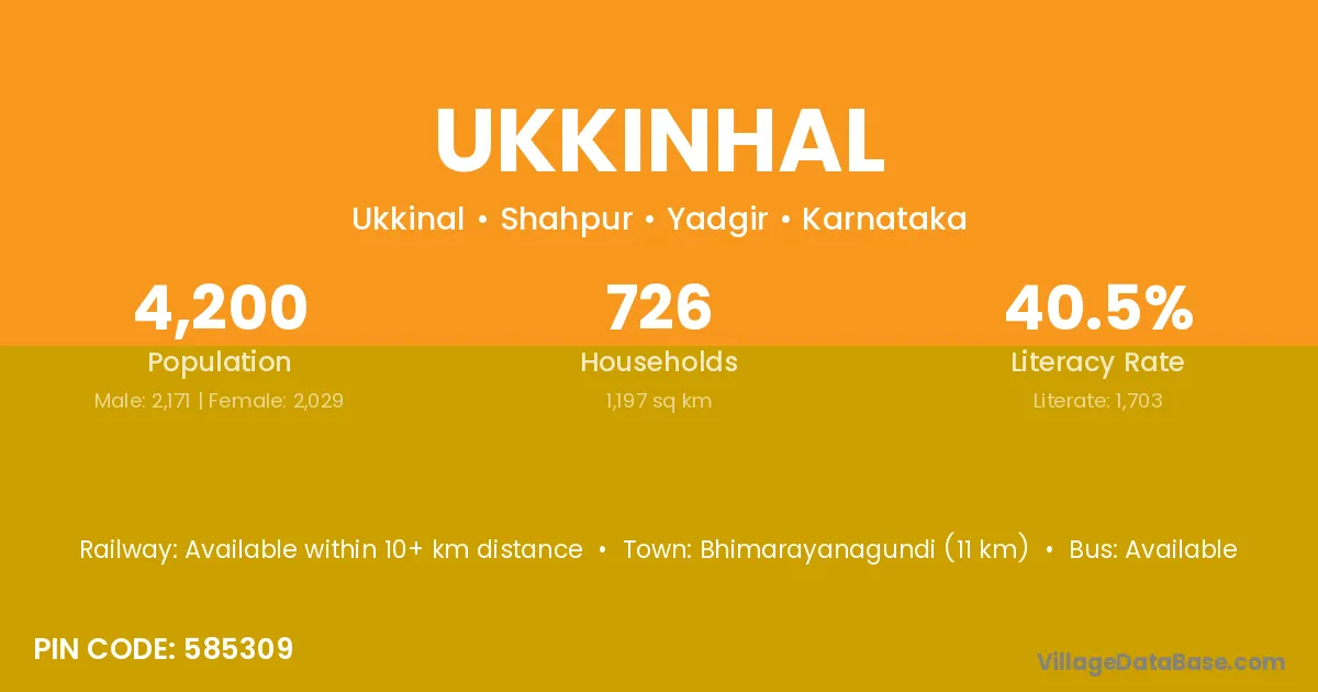 Bhimarayanagundi (11 km) is the nearest town to Ukkinhal village for major economic activities and is located approximately 11 km away.