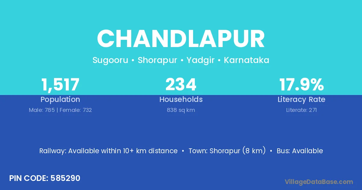 Shorapur (8 km) is the nearest town to Chandlapur village for major economic activities and is located approximately 8 km away.