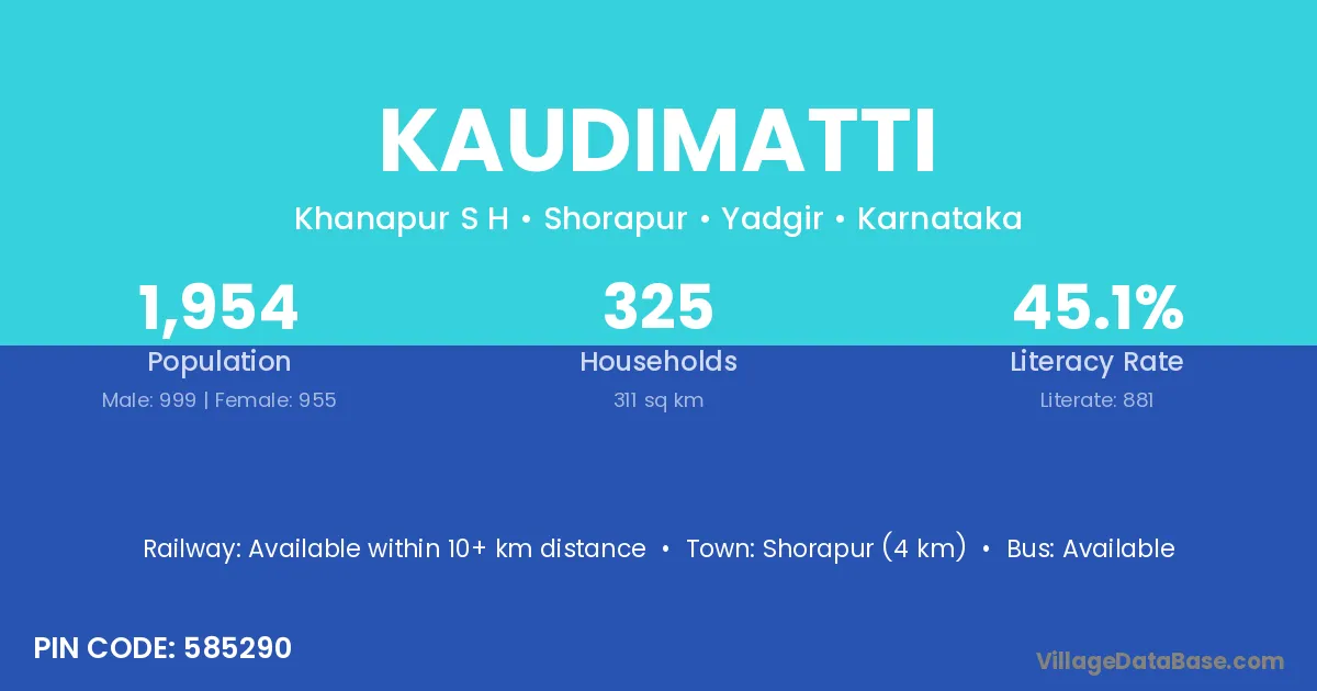 Shorapur (4 km) is the nearest town to Kaudimatti village for major economic activities and is located approximately 4 km away.