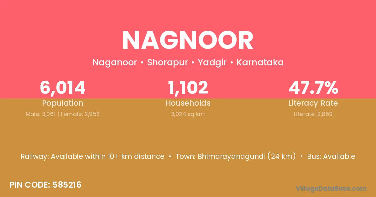 Bhimarayanagundi (24 km) is the nearest town to Nagnoor village for major economic activities and is located approximately 24 km away.