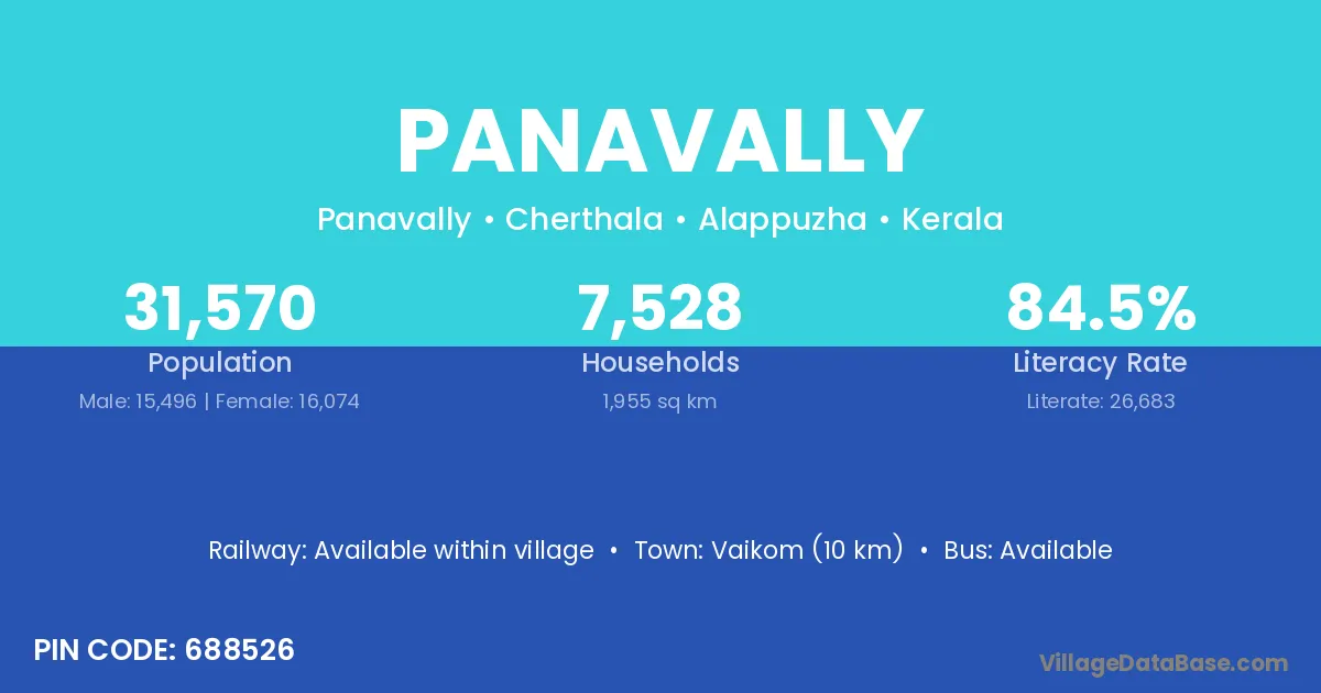 Vaikom (10 km) is the nearest town to Panavally village for major economic activities and is located approximately 10 km away.