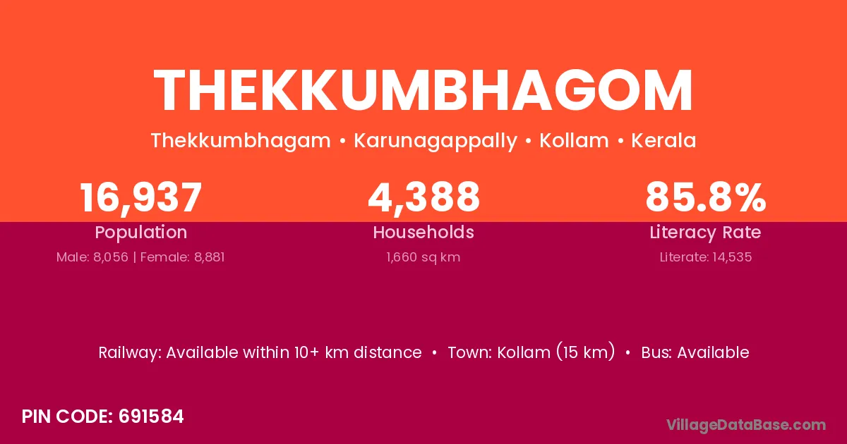 The population of Thekkumbhagom village is distributed between literate and illiterate residents as follows: