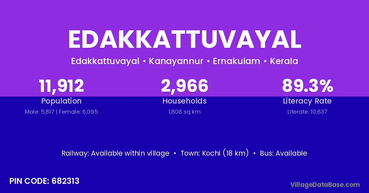 Kochi (18 km) is the nearest town to Edakkattuvayal village for major economic activities and is located approximately 18 km away.