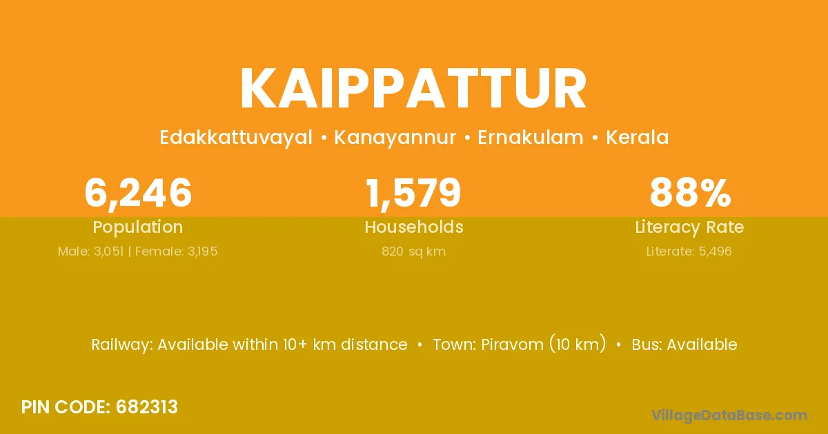 Piravom (10 km) is the nearest town to Kaippattur village for major economic activities and is located approximately 10 km away.