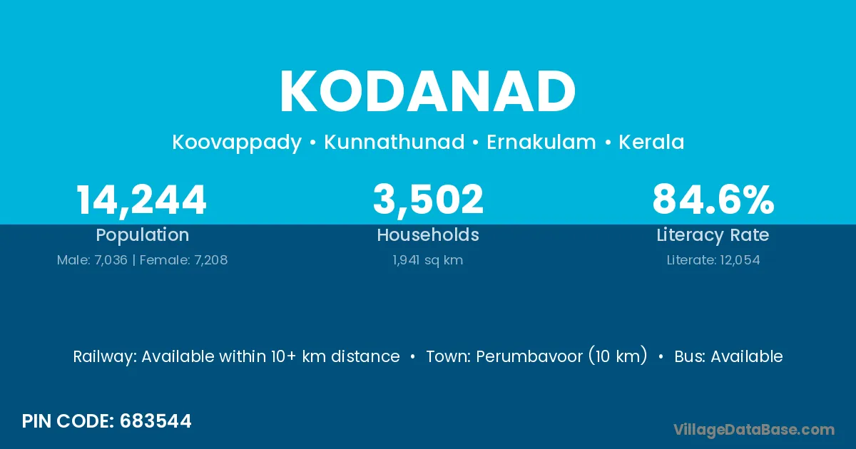 According to Census 2011 information, the village code of Kodanad village is 683544.