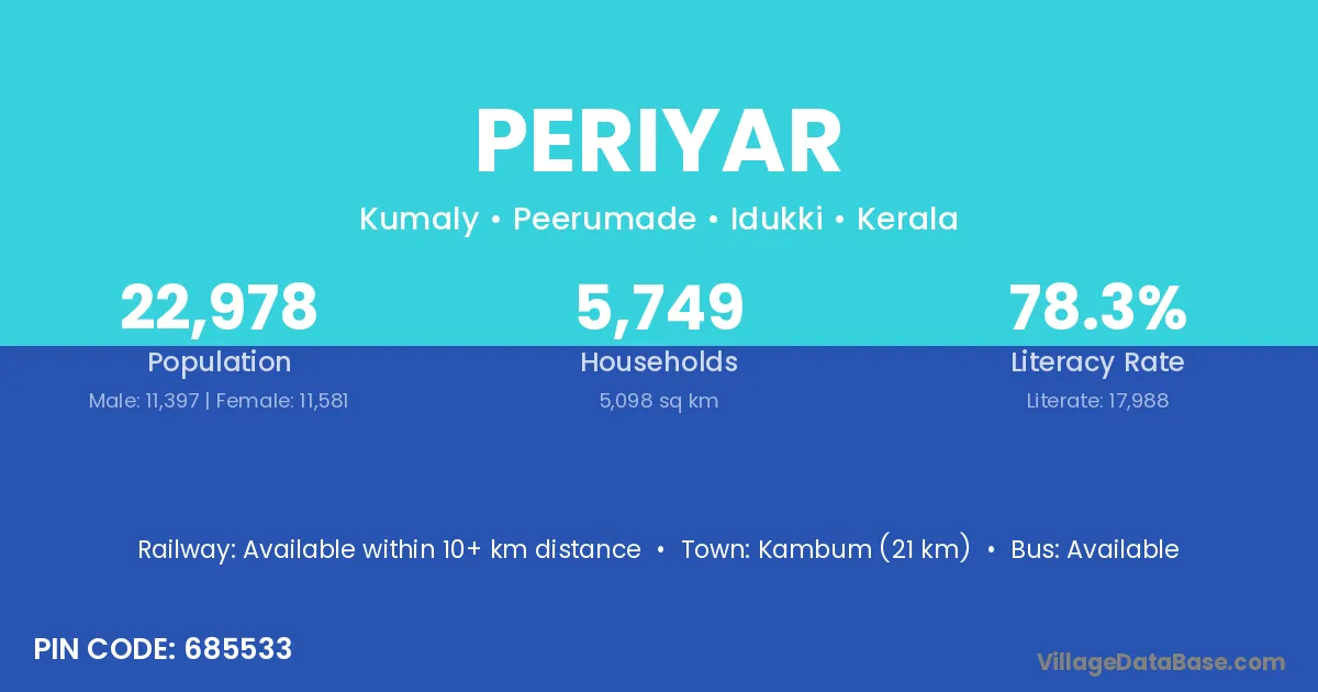 Kambum (21 km) is the nearest town to Periyar village for major economic activities and is located approximately 21 km away.