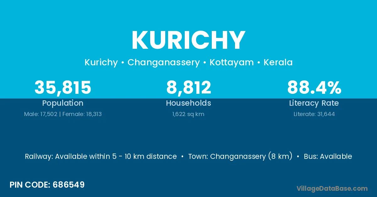 Changanassery (8 km) is the nearest town to Kurichy village for major economic activities and is located approximately 8 km away.
