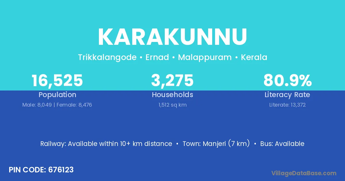 Manjeri (7 km) is the nearest town to Karakunnu village for major economic activities and is located approximately 7 km away.