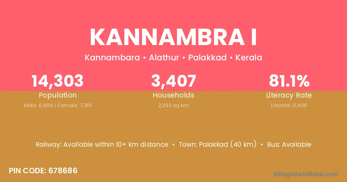 Palakkad (40 km) is the nearest town to Kannambra I village for major economic activities and is located approximately 40 km away.
