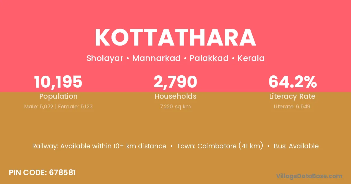 Coimbatore (41 km) is the nearest town to Kottathara village for major economic activities and is located approximately 41 km away.