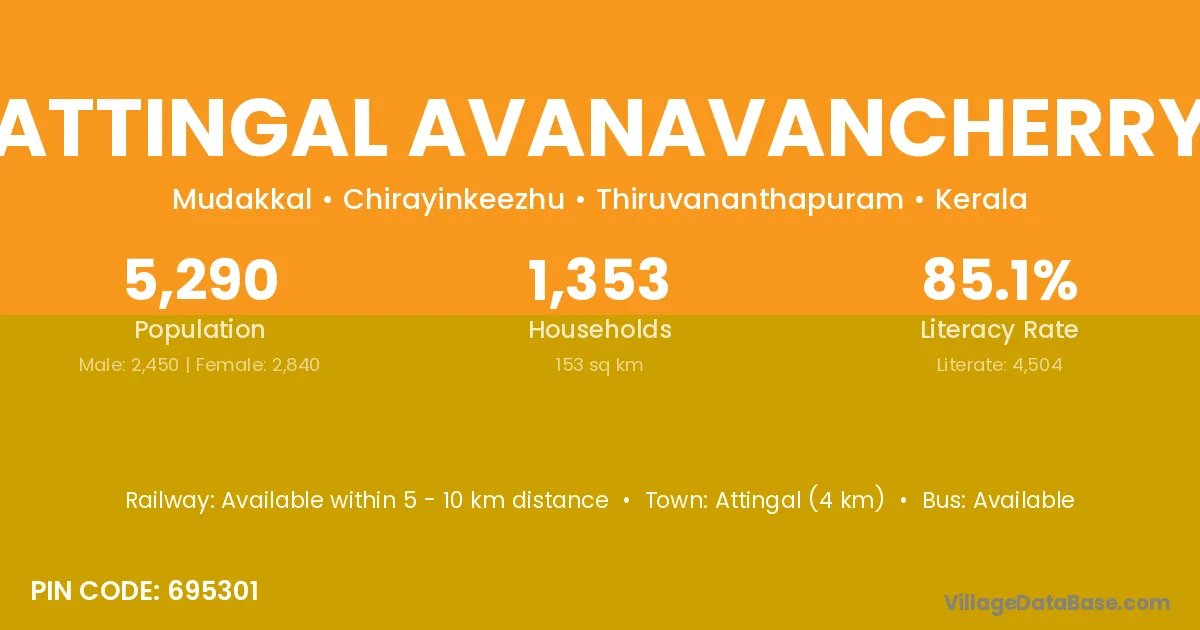 There are approximately 1,353 households in Attingal Avanavancherry village.