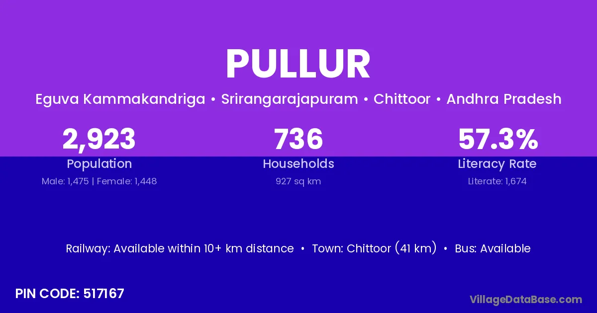 Mukundapuram is the nearest town to Pullur village for major economic activities