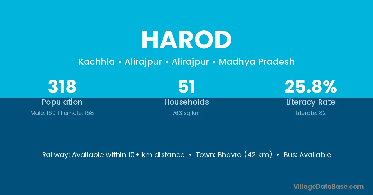 Bhavra (42 km) is the nearest town to Harod village for major economic activities and is located approximately 42 km away.