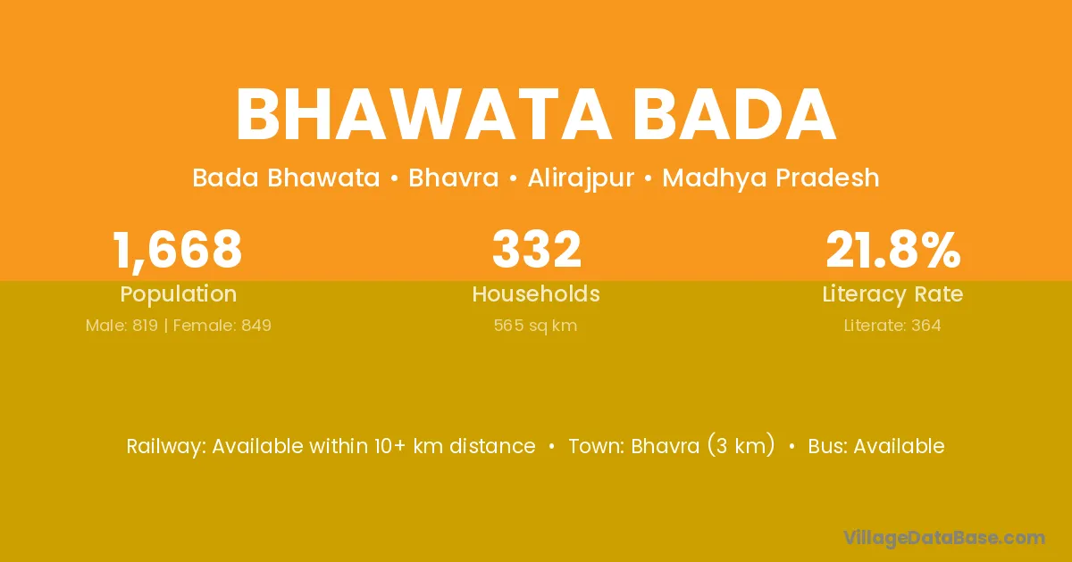 Bhavra (3 km) is the nearest town to Bhawata Bada village for major economic activities and is located approximately 3 km away.