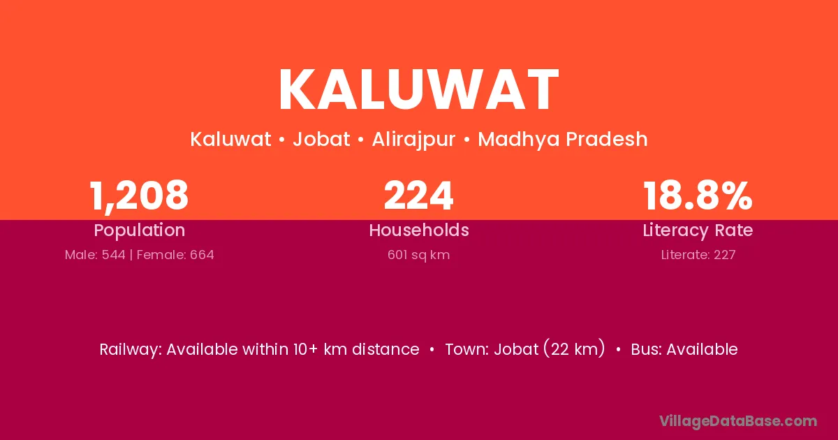 Jobat (22 km) is the nearest town to Kaluwat village for major economic activities and is located approximately 22 km away.