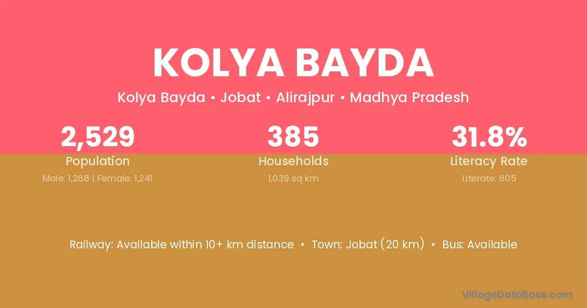 Kolya Bayda village is located in the Jobat Tehsil of the Alirajpur district in Madhya Pradesh .