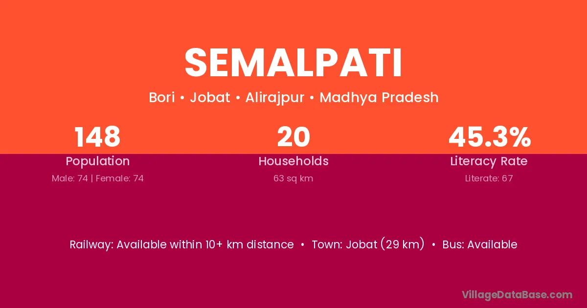 Jobat (29 km) is the nearest town to Semalpati village for major economic activities and is located approximately 29 km away.