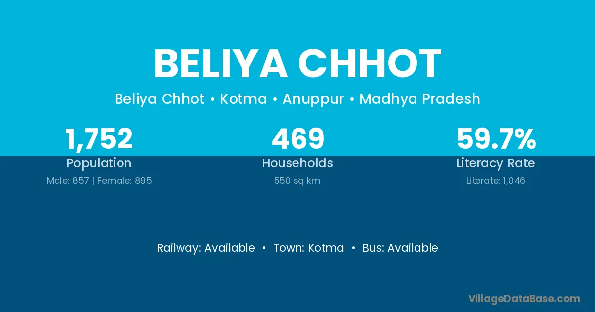 Kotma is the nearest town to Beliya Chhot village for major economic activities