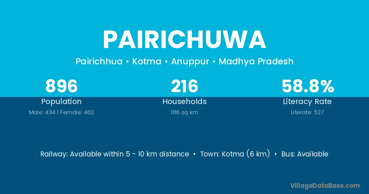 Kotma (6 km) is the nearest town to Pairichuwa village for major economic activities and is located approximately 6 km away.