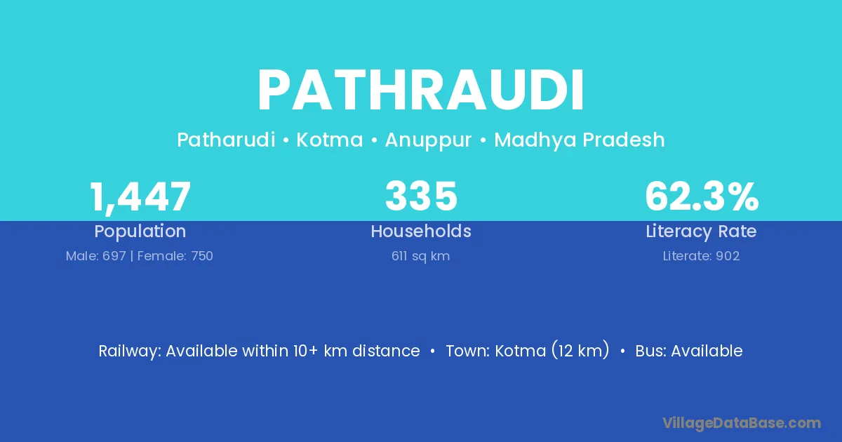 Kotma (12 km) is the nearest town to Pathraudi village for major economic activities and is located approximately 12 km away.