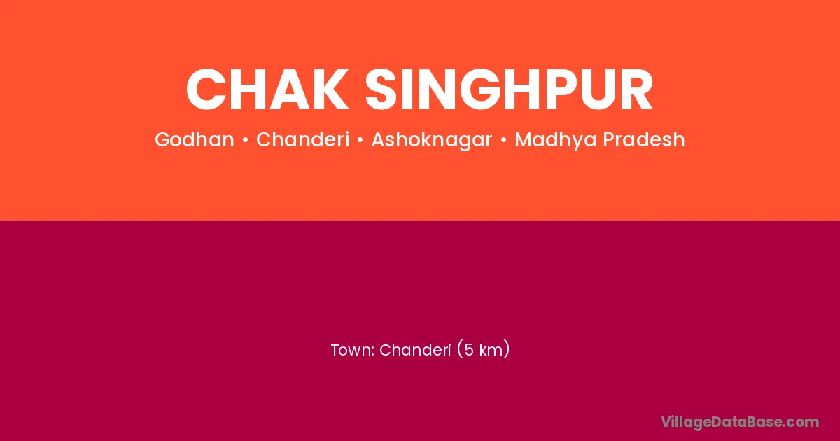 Chanderi (5 km) is the nearest town to Chak Singhpur village for major economic activities and is located approximately 5 km away.