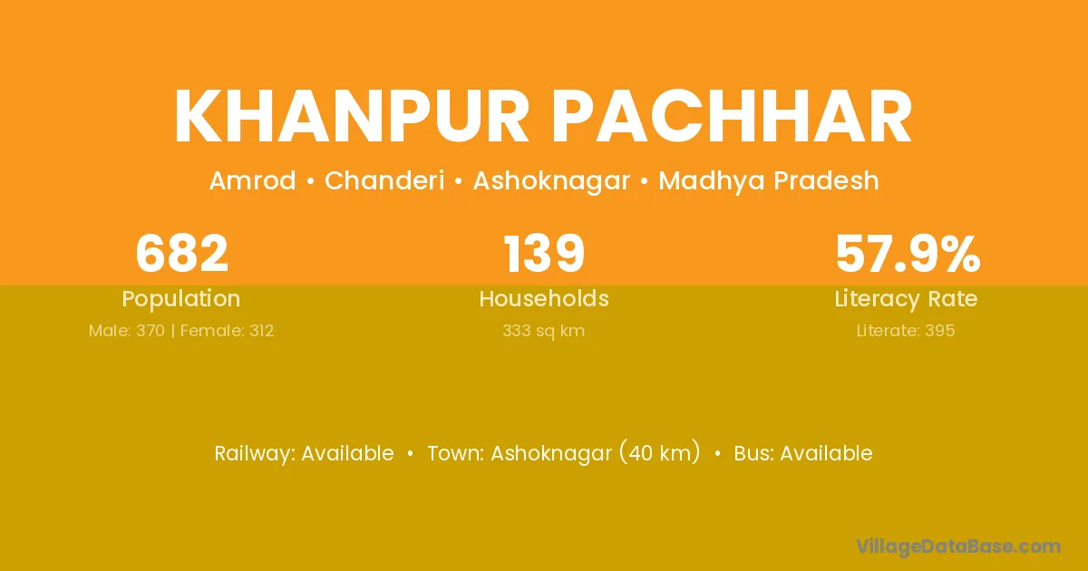 Ashoknagar (40 km) is the nearest town to Khanpur Pachhar village for major economic activities and is located approximately 40 km away.