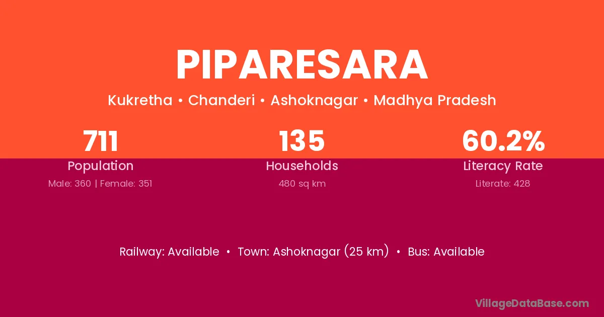 Ashoknagar (25 km) is the nearest town to Piparesara village for major economic activities and is located approximately 25 km away.