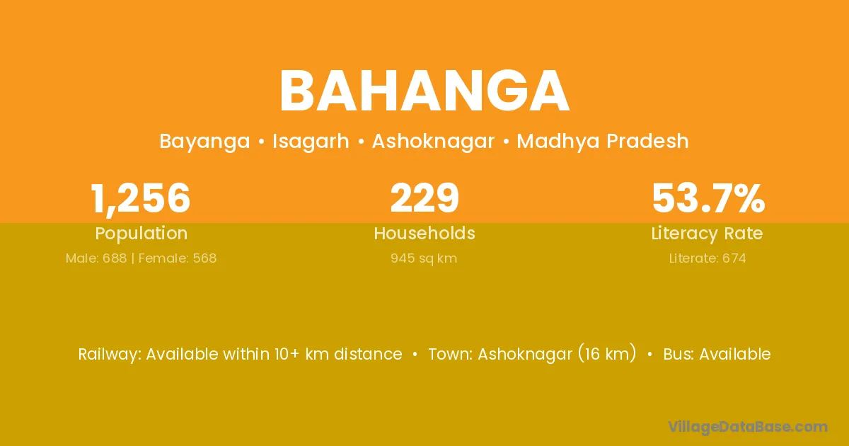 Ashoknagar (16 km) is the nearest town to Bahanga village for major economic activities and is located approximately 16 km away.