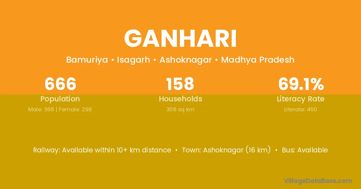 Ashoknagar (16 km) is the nearest town to Ganhari village for major economic activities and is located approximately 16 km away.