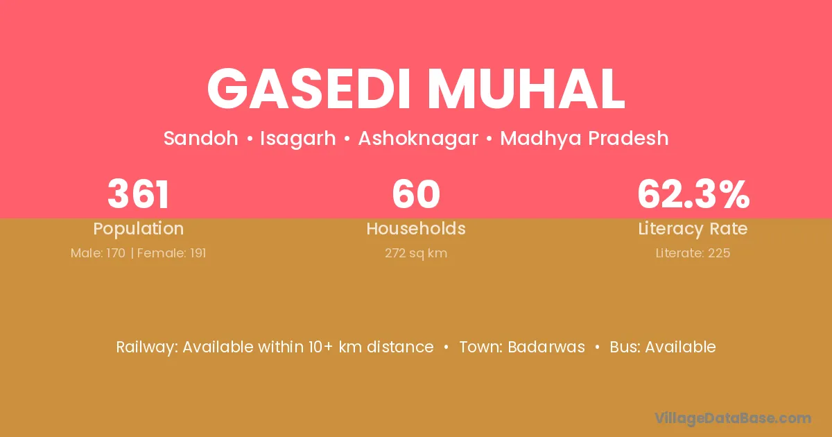 Gasedi Muhal village has a total population of 361 people, of which 170 are males and 191 are females.