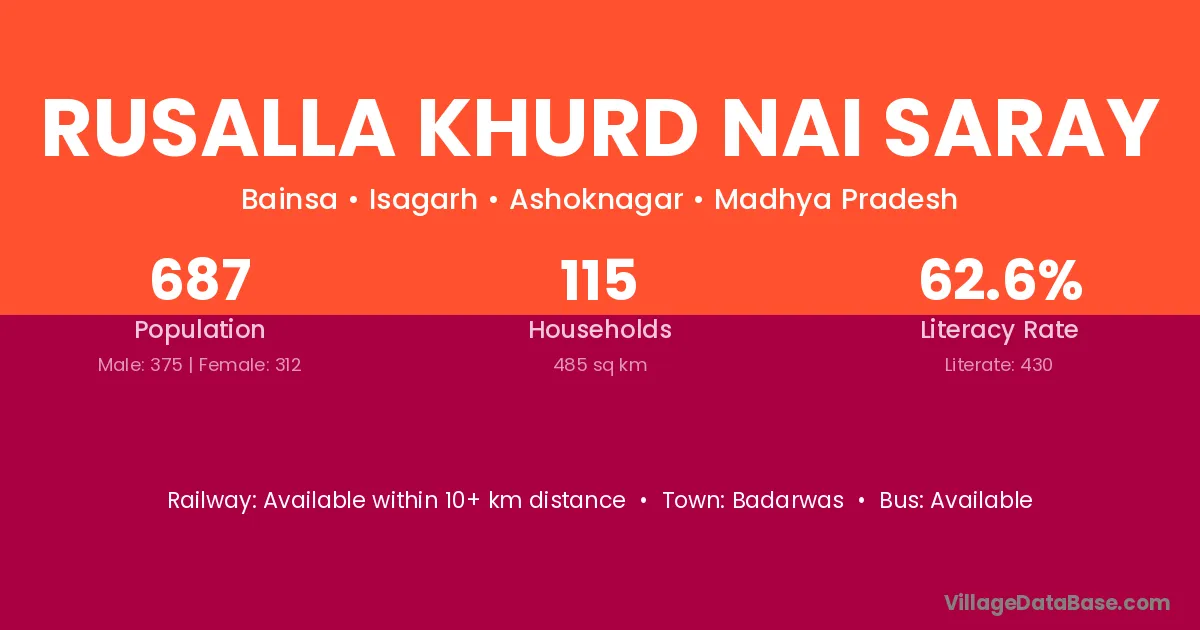 Rusalla Khurd Nai Saray village is located in the Isagarh Tehsil of the Ashoknagar district in Madhya Pradesh .