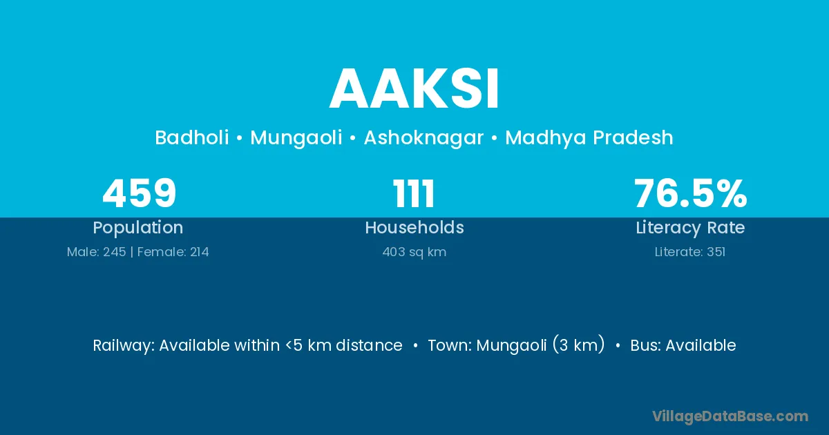 Mungaoli (3 km) is the nearest town to Aaksi village for major economic activities and is located approximately 3 km away.