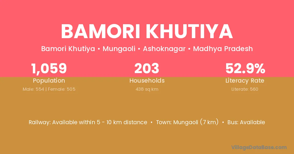 Bamori Khutiya village has a total population of 1,059 people, of which 554 are males and 505 are females.