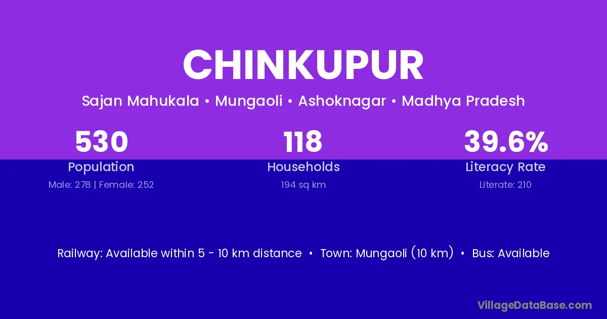 Mungaoli (10 km) is the nearest town to Chinkupur village for major economic activities and is located approximately 10 km away.