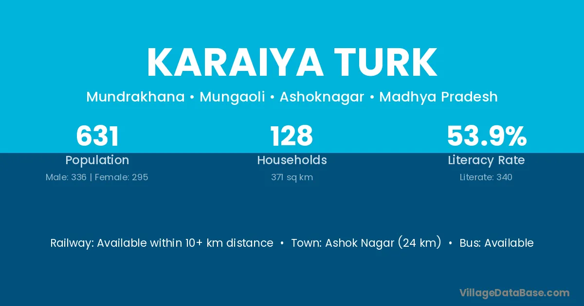 Ashok Nagar (24 km) is the nearest town to Karaiya Turk village for major economic activities and is located approximately 24 km away.