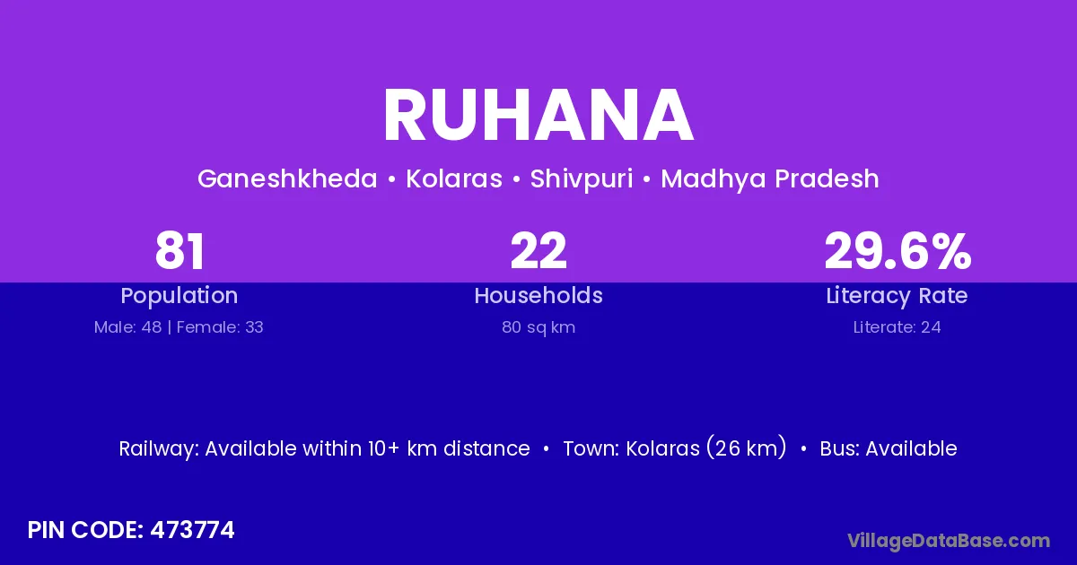 Mungaoli (12 km) is the nearest town to Ruhana village for major economic activities and is located approximately 12 km away.
