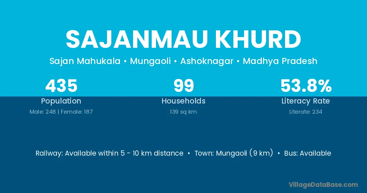 Sajanmau Khurd village has a total population of 435 people, of which 248 are males and 187 are females.